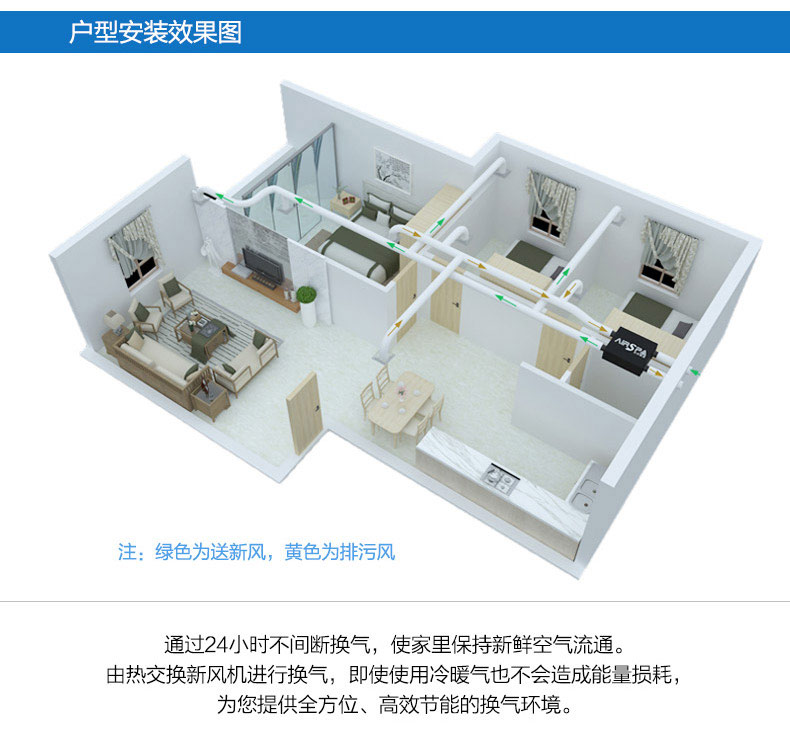 雙向流新風(fēng)機:訂機采用雙核動力設(shè)計,動力強,體積?。徊捎弥绷鳠o刷電機,低噪音,低能耗
